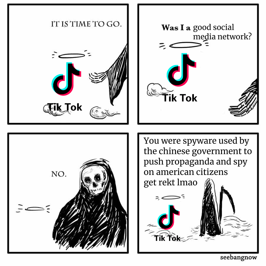 as an American yeah, seeing this post is just depressing. like people are actively cheering a loss of internet freedom. the government doesn’t care about bytedance or else capcut would have to go too. they care about controlling information, tiktok has been essential in issues like Palestine, even if I don’t like the platform itself I can admit that.