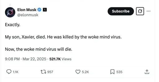 So heartbreaking for a father to lose his son to the evil trainsgender dei virus or something.