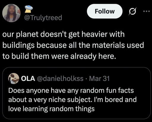 Wait… Weight is a until of gravitational force right? And that force weakens as objects move away from each other. So wouldn’t the planets weight become less if you made tall buildings?