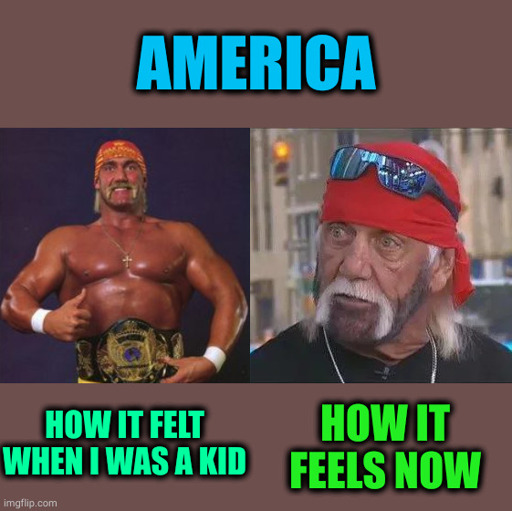 Or you could have went a different route, and made the before picture hogan smiling with trump back in 1990 at wrestlemania. And then had the after photo be hogan posing with trump in modern day.