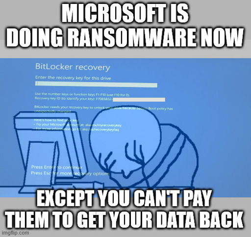Back in January Microsoft encrypted all my hard drives without saying anything. I was playing around with a dual boot yesterday and somehow aggravated Secureboot. So my C: panicked and required a 40 character key to unlock.