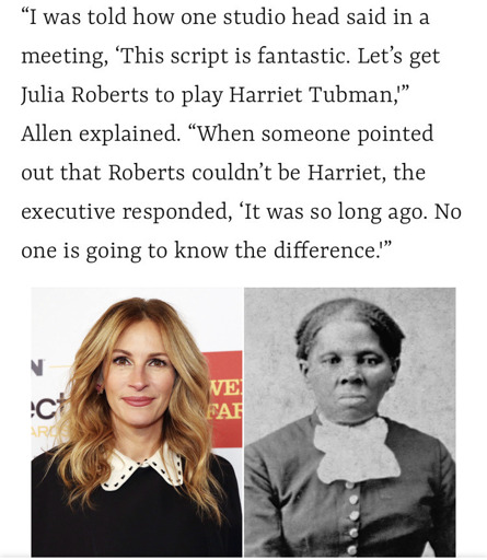 So, the fact that she was a black woman is kind of important to Harriet Tubman’s lore, and casting Julia Roberts in the role is rather inappropriate.