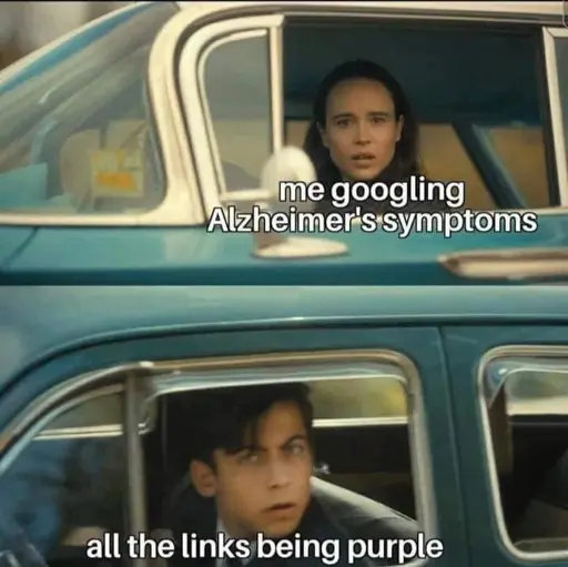 When you have a family history of Alzheimer’s and also inherited red-green color blindness from the same family member so you can’t see purple 🙃