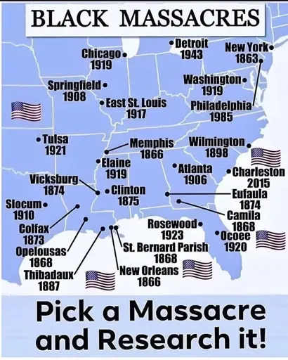 arrow-up1532arrow-down1imageMassacres of Black People, there are morelemmy.blahaj.zoneIO 😇@lemmy.blahaj.zone to Political Memes@lemmy.worldEnglish · 4 months agomessage-square33linkfedilinkfile-text