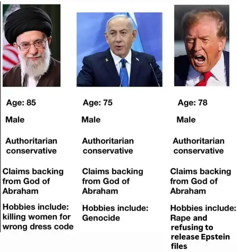 arrow-up1408arrow-down1imageThe Three Stooges of Abrahamlemmy.dbzer0.comAnarchoEngineer@lemmy.dbzer0.com to Atheist Memes@lemmy.world · 4 months agomessage-square22linkfedilinkfile-textcross-posted to: politicalmemes@lemmy.world