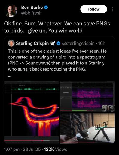 arrow-up11.08Karrow-down1imagebird based storagelemmy.canave@lemmy.ca to Lemmy Shitpost@lemmy.world · 8 months agomessage-square95linkfedilink