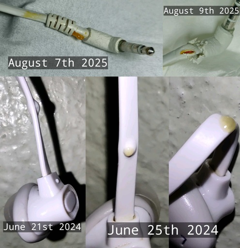 Probably disintegrating, I don’t know. But now I’ll finally have to buy new ones. Currently there’s 6 oozing points in total. 3 are minor, one is now inactive (the 2024 pimple), one I taped over, but it’s starting to overflow, and one near the jack is major.