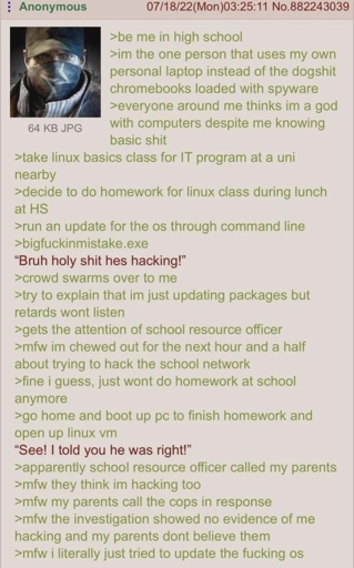 arrow-up1496arrow-down1imageAnon updates GNU/linuxlemmy.worldindividual@toast.ooo to linuxmemes@lemmy.world · 2 months agomessage-square64linkfedilinkfile-text