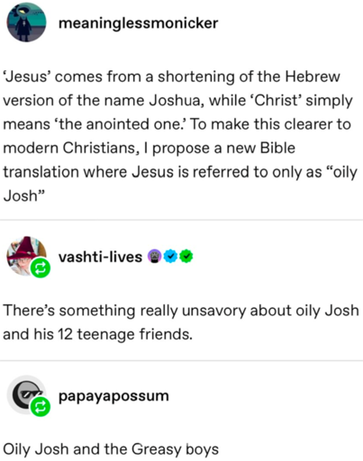 The Picard Maneuver@piefed.world to Curated Tumblr@sh.itjust.worksEnglish · 1 month agoOily Joshmedia.piefed.worldimagemessage-square12linkfedilinkarrow-up1587arrow-down15