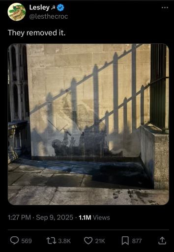 Honestly a better outcome than the wall being cut out, replaced and auctioned to some rich fucks with millions to spend on artwork. And Banksy reportedly hates that so that’s cool that it’s gone now