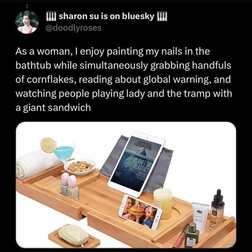 minus-square200ok@lemmy.worldlinkfedilinkarrow-up14·7 months ago…Or lip gloss. Both are equally relevant and necessary for a lady’s bath time.