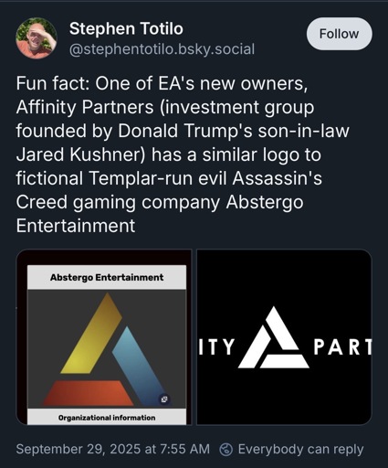 I mean, as it’s made by ubisoft, it would be pretty funny if they leaned heavily into the evil Abstergo storyline as a dig at EA.