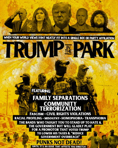 … more than 40 punk bands are okay with doing business with Cameron Collins, the founder of Brew Ha Ha Productions, who produces Punk in the Park and also contributed $225 to Trump’s run for President in 2024.