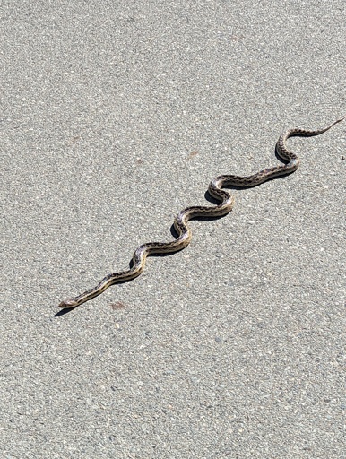 Maybe some kind of corn snake? He’s in southern California, and the bike path was along the San Diego river.