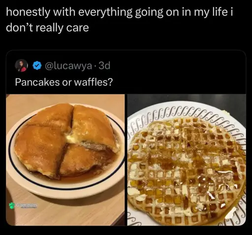 minus-squareOrteilGenou@lemmy.worldlinkfedilinkarrow-up2·26 days agoFrench style crepes, paper thin, with slices of ham and gruyere between them the first time, then maple syrup and/or whipped cream and berries the second time, to finish.