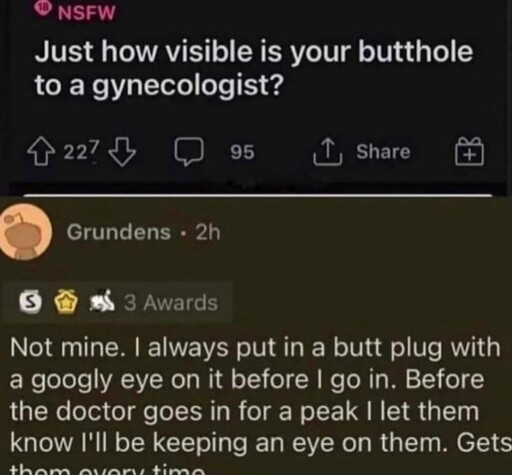 I’ve never been anally penetrated during a gyno visit, not a single time in many many years in many different places. If you have, that’s fucking weird.