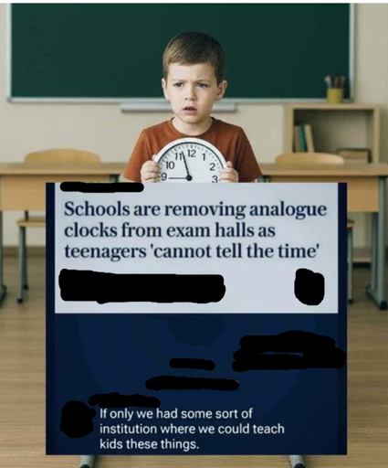 minus-squarepir8t0x@ani.sociallinkfedilinkarrow-up7arrow-down3·1 month agoTeenagers not being able to tell the time from analogue clocks is CRAZY (saying this as a teenager myself)