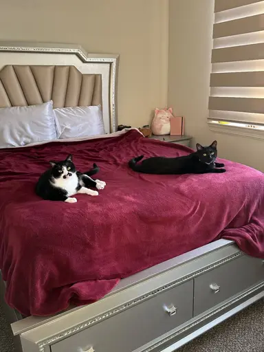 For Scorpi, the cat on the right, we call him Mr. Small, Spider Cat, and Crybaby.