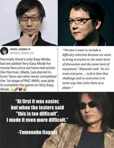 Like I already said there are relatively “few” games where the difficulty is core to the game but a shitload more where the difficulty doesn’t really matter. And of that 2nd bunch there is a poor selection of difficulty options in most of them.