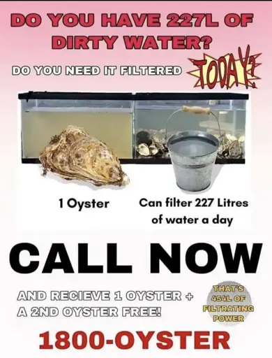 I got the same issue, but I solved it by building a desalination system at home. After the water is cleansed by the oyster, the water gets extracted leaving the salt behind which can be added to a new batch of fresh water. Saves me a few salt trips to the store.