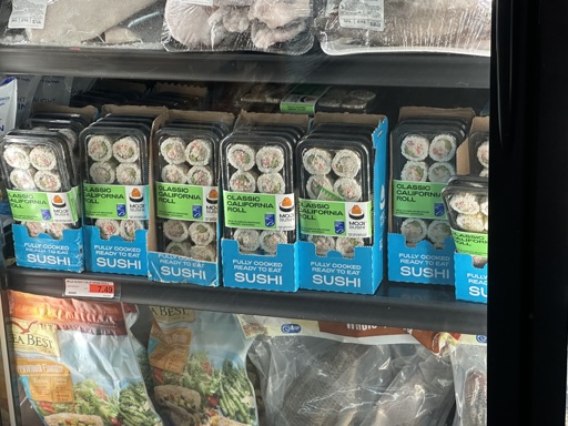 Edit: My perception was obscured by disgust and I didn’t realize these are California rolls and don’t have fish, but the point stands. Frozen rice and frozen avocado are fucking gnarly. Frozen avocado especially is a sin.
