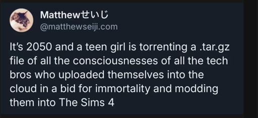 Plus, these consciousnesses might be carefully protected the way major corporations have protected my SSN. So maybe the billionaires have nothing to worry about…