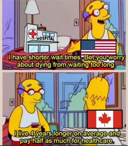 Yeah I was gonna say, have the people repeating this actually used American healthcare? We have terrible wait times in addition to our other horrible issues.