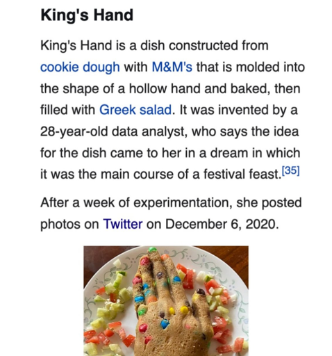 Up to that point, I was looking at the description in disbelief, but burst out laughing when I read “greek salad”. The hand cookie bit was just realistic enough to get it in the uncanny valley (the photo looked like an AI cookie hand, too…
