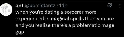 arrow-up1120arrow-down1imageBut... they said I "seem way more talented than my spell-casting level"media.piefed.worldThe Picard Maneuver@piefed.world to People Twitter@sh.itjust.worksEnglish · 2 months agomessage-square2linkfedilink