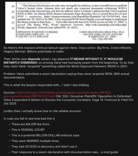 … why the fuck would proving Valve’s superdupermajority market share hinge on WON?