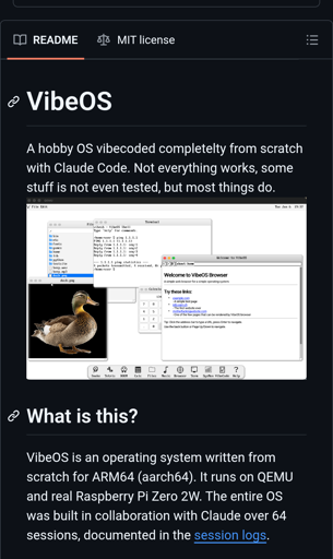 That one is funny. And somewhat interesting project to see limits of LLMs. There is another project called vibeos at https://vibeos.sh/ which is, more disgusting than anything I guess.