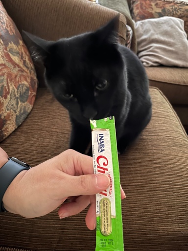 Babysitting my mom’s three cats. She left a box of Churu. They like them a lot. I was surprised. I thought it was just a few rare internet videos I have watched. Cats really like this.
