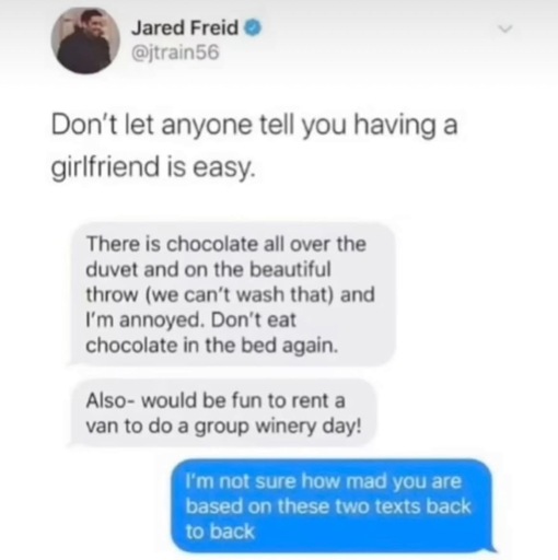 He isn’t a keeper though, how the fuck do you eat chocolate in a way where it gets all over where you’re eating it? I’ve had chocolate and just about any other food while in bed and black out drunk and never gotten any stains on the bedclothes.