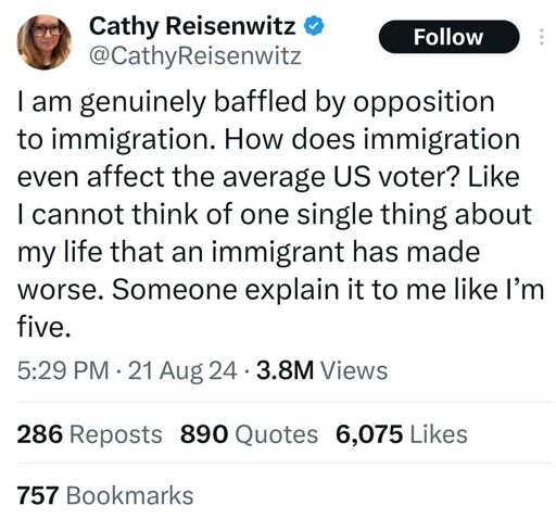 Of course the answer is a legit path to citizenship and resources to help people assimilate more easily and without fear, not Gestapo shit, but immigration, like abortion, is an issue that is purposely never resolved, and it never will be. This is a golden goose issue for Republicans, just like abortion is a golden goose issue for Democrats. They simply make too much money in donations and are able to grift all the public money they want in order to pretend it’s being solved, and therefore, have no real motivation to fix it.