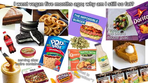 The vegan I knew in college actually warned people about weight gain while she was pushing her veganism on us. “Its hard not to replace everything with carbs” was basically her spiel.