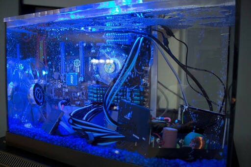 Alcohol may mess up some of the plastic pieces, mineral oil might be a better option, that’s what people use in the “underwater” computer builds