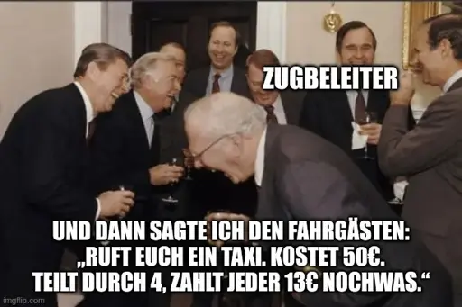 Aehnliche Situation in Deutschland - lange Schlange vor dem Beschwerdeschalter, wo ich ich dann erst noch die Leute fragen durfte ob sie jetzt den Arsch offen haben den Schalter wegen “Feierabend” zumachen zu wollen waehrend der halbe Zug noch auf Hilfe wartet. Gefolgt von einer Diskussion ob ich wirklich ein Taxi bezahlt haben muss, ich koennte die geplante 30 Minuten Direktverbindung doch mit mehrmals Umsteigen innerhalb der naechsten 6+ Stunden auch noch hinbekommen (die haetten mich wild in der Gegend rumfahren lassen, bis dann die ersten Zuege zu meinem Zielort am naechsten Morgen wieder fahren).