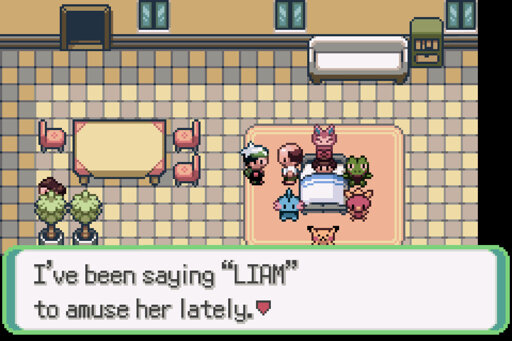 I’ve been going around exploring trying to find niche stuff to do after getting stuck on the twin’s gym battle. I found this guy who wanted me to teach him something to make his daughter laugh. I made him say Liam, which is a personal reference too in my friend group (one of my friend’s cracked up at something unrelated when one of us said the name, it’s been a joke ever since).