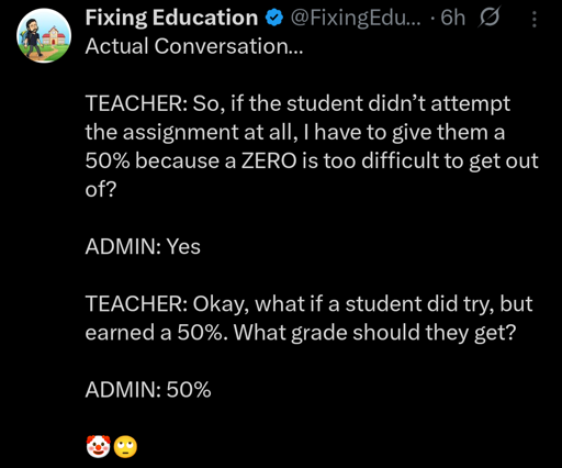 arrow-up1716arrow-down1imageMaking grades meaningless so that everyone advances is doing a disservice to kids' education.media.piefed.worldThe Picard Maneuver@piefed.world to People Twitter@sh.itjust.worksEnglish · 25 days agomessage-square136linkfedilink