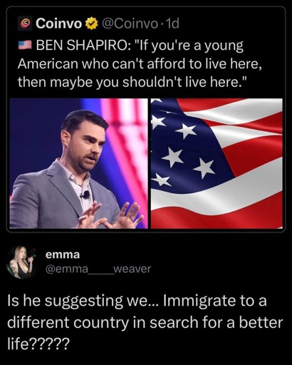 For context, he was speaking about living in expensive metropolitan cities, suggesting people move into less expensive places within the US, like the interior states. Ben says enough stupid shit to mock without isolating a quote from context to make it seem like he said/meant something else entirely.