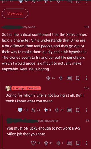 Lunatique Princess@lemmy.mlOPto Mildly Infuriating@lemmy.world•Cynical and pessimistic people. 🫤English15·16 hours agoWho cares about your perspective you don’t even enjoy life. Talk about dense. Here’s a quote for you. “Lions don’t loose sleep over the opinion of sheep”.
