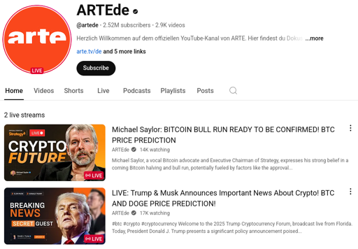 Ja, wurde wieder behoben. Aber anscheinend war nicht nur der YT-Kanal artede betroffen: https://berlin.social/@carlosfroh/115167060813301549
